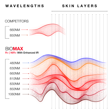 Our exclusive patent-pending R+|NIR+ multi-wave spectral output delivers the most advanced red light therapy available: Harnessing seven different red and infrared wavelengths of light for truly next level therapy for all applications.
